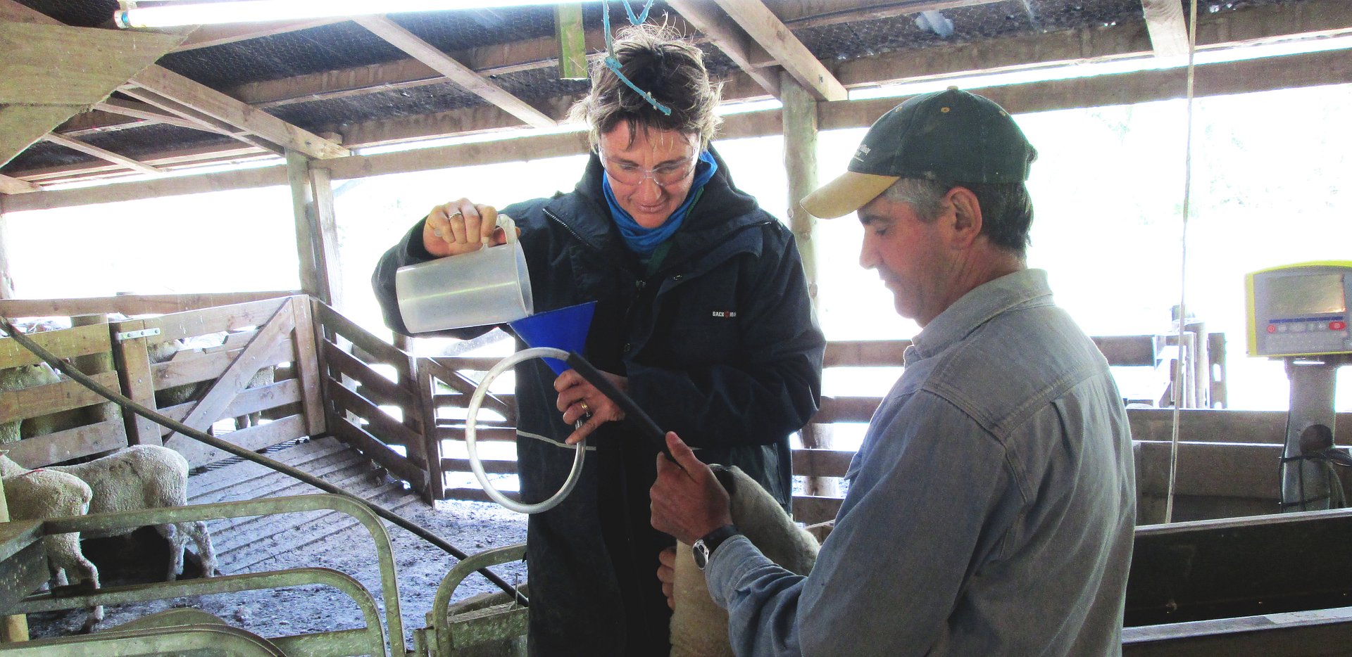 Vet Rachel Cashin and Stud Manager Seymour Spence administering a dose of sporidsmin